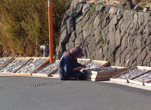 - 岩地地区では、今朝キビナゴ漁が行なわれました。地区の方々は午後からキビナゴを干しメザシにしていました。