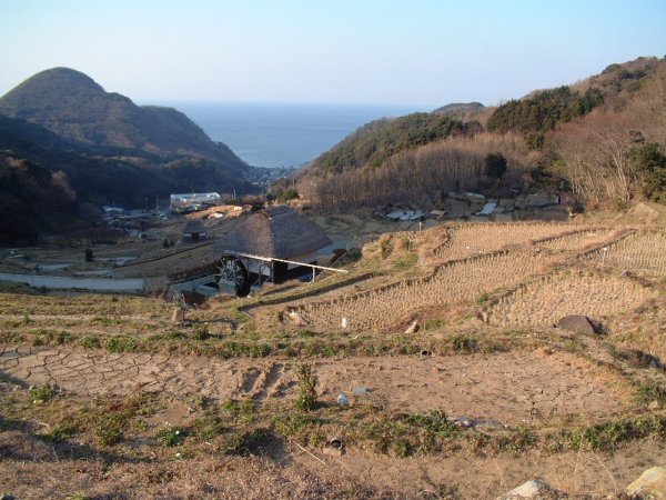 - 田んぼの中からの松崎町です。