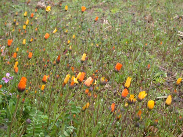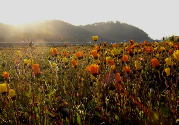 - 「田んぼをつかった花畑」の様子です。現在咲いているのはアフリカキンセンカです。 アフリカキンセンカは日没や早朝には、花を閉じてしまいます。 写真をクリックすると朝の状態をご覧になれます。