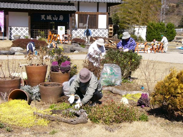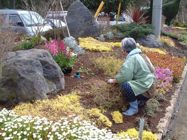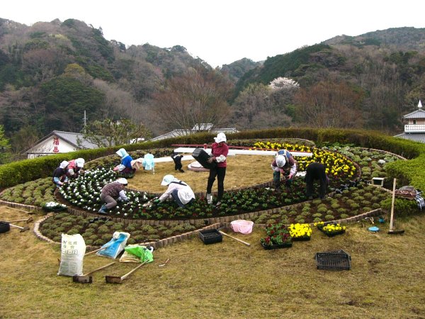 - 道の駅「花の三聖苑」では、花の会の皆様によって植え替えが行なわれていました。