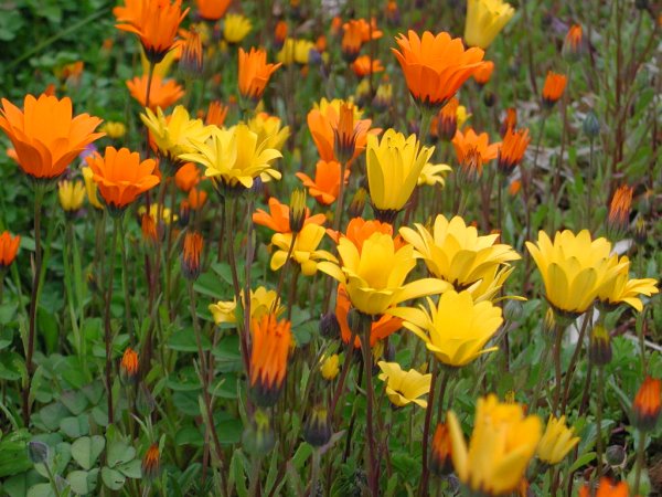 - 那賀花畑ではアフリカキンセンカが咲き始めました。 まだまばらですが、オレンジや黄色の花が見られます。