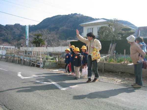 - 松崎幼稚園では、4月から新小学1年生になる園児を対象に通学路確認を兼ねた親子交通安全教室が開催されました。