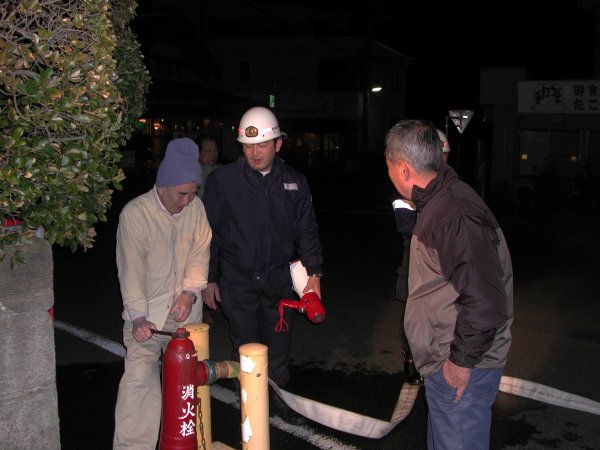 - 先週から町内各所では消火栓訓練が行われています。 消防団の説明を受けたあと、地域住民が実際に消火栓を使った放水を体験しています。