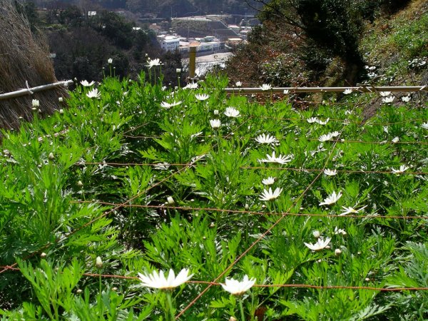 - 今は生産する農家が少なくなりましたが、岩地のマーガレット畑ではマーガレットが咲いています。