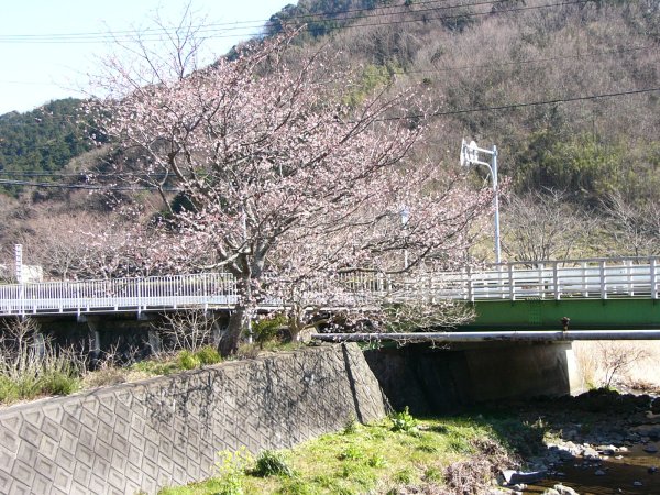 - 県道松崎下田線沿いにある船田橋の横にある早咲きの桜が3分咲きです。この桜が散る頃ソメイヨシノが開花してきます。