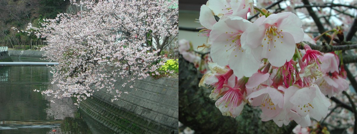 - 今日はたくさんの花情報が寄せられたので、今日の松崎第2弾を掲載します。 南川沿い(松崎警察署から国民宿舎伊豆まつざき荘付近)の桜がほぼ満開です。
