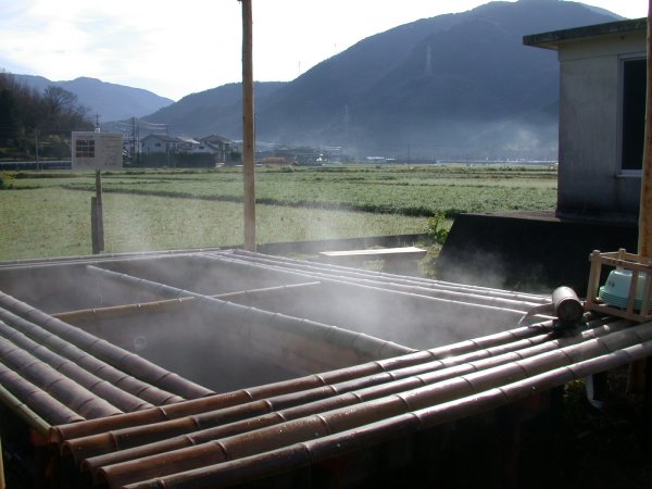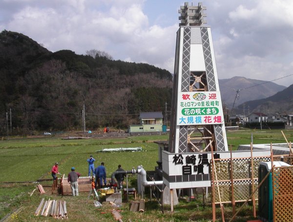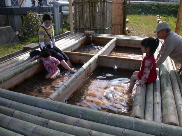 - 地域おこしの会手づくりの足湯が完成いたしました。 周囲には、手づくりベンチなども置かれています。 写真をクリックすると、作成風景をご覧になれます。