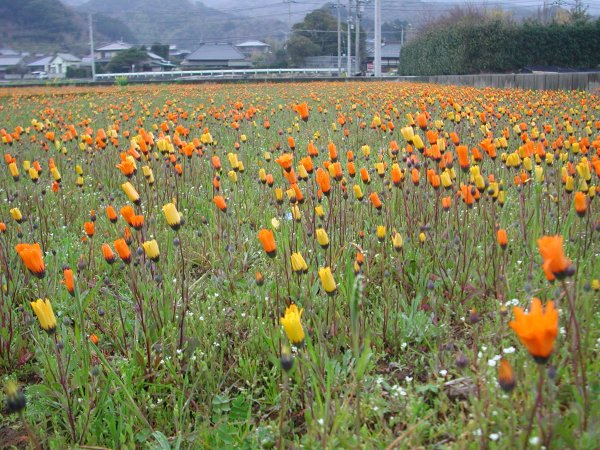 - 那賀花畑のアフリカキンセンカは、日に日に色を濃くします。 下田よりの田圃の方が育ちがよいようです。