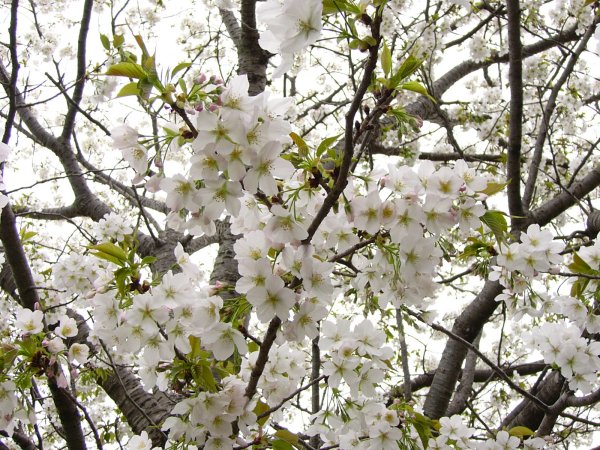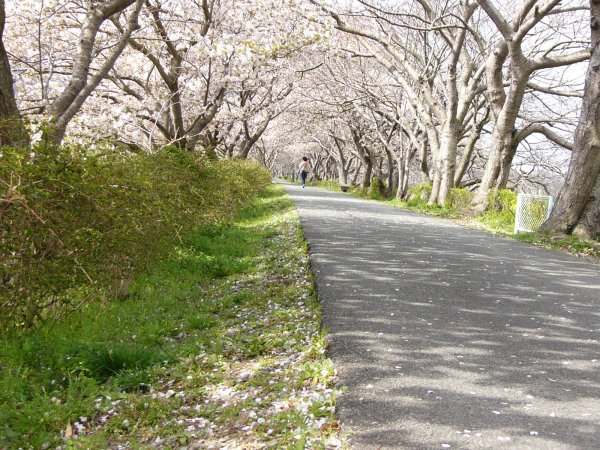 - 伏倉土手では山桜が満開です。 白い桜のトンネルができています。