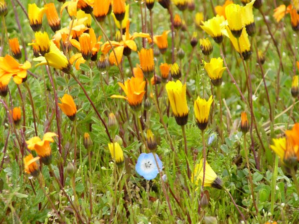 - 中耕地大規模花畑のアフリカキンセンカは、チラホラ見えるようになりました。 一面に花が咲くのはまだ少し先のようです。