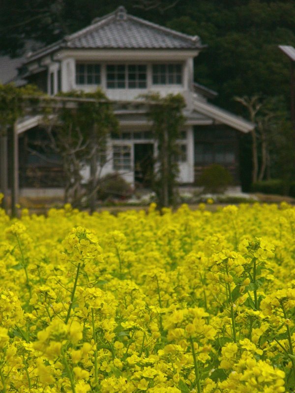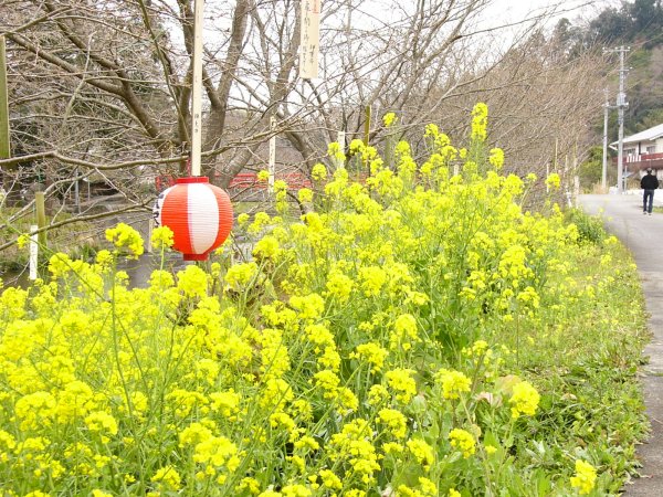 - 中川小学校前では、菜の花がきれいに咲いています。