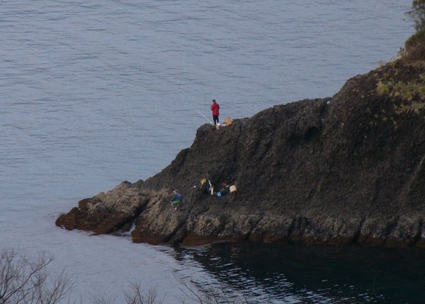 - 室岩洞から下をみると磯釣りをしている人がいました。