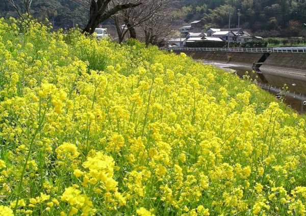 - 那賀川沿いでは、菜の花が見頃を迎えています。 画像をクリックすると南郷橋付近の菜の花をご覧になれます。