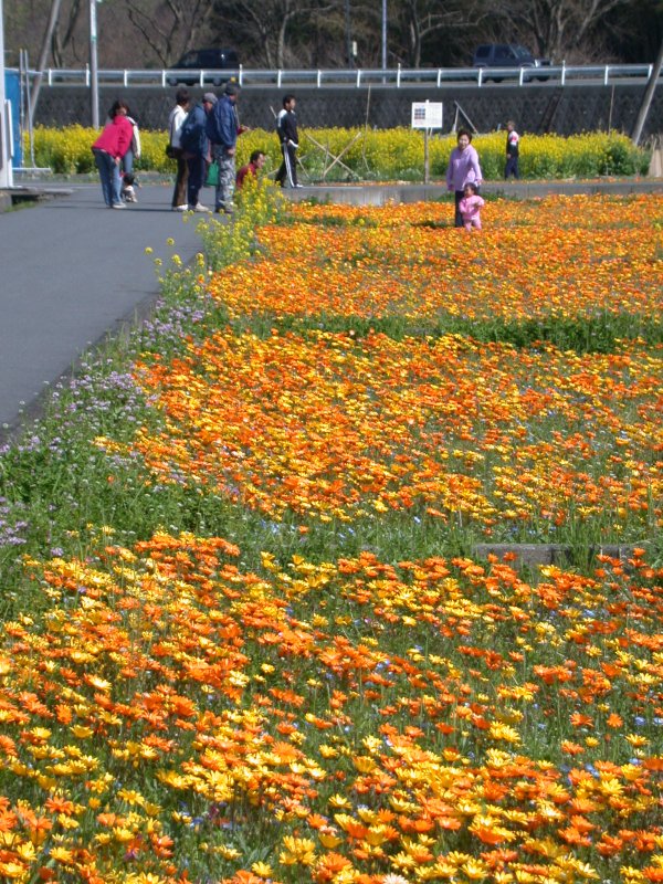 - 今日は天気も良く暖かい1日だったので、花畑は見物客で賑わっていました。 現在花畑では、アフリカキンセンカ,るりからくさ,姫金魚草の3種類の花が咲いています。