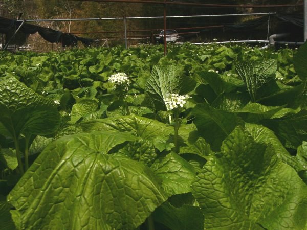 - 松崎町池代地区のわさび田では、わさびの花が咲いています。