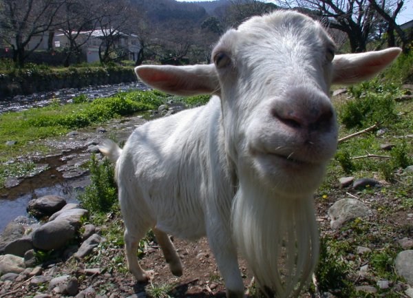 - 大沢の河原には、山羊がいます。 人にも慣れているので、近づくと寄ってきます。
