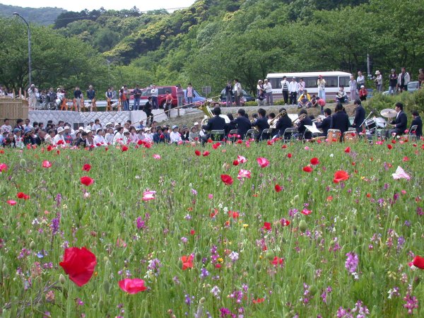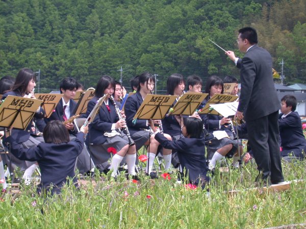 - 本日、那賀大規模花畑では、松高吹奏楽部の演奏が行われ大勢の観客でにぎわいました。