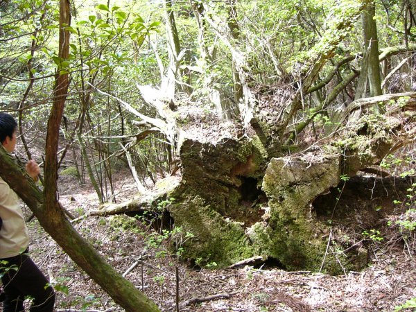 - 富貴野山や、山頂付近の杉林の中に見られる御礼杉です。これは、昔の人が山に対する御礼を表すために植えたそうです。画像をクリックすると人が映っていますので、その大きさが分かると思います。