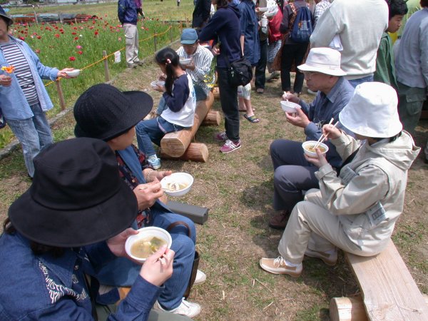 - 演奏に合わせ、地域おこしの会では、みそ汁やオリーブ茶のサービスを行いました。