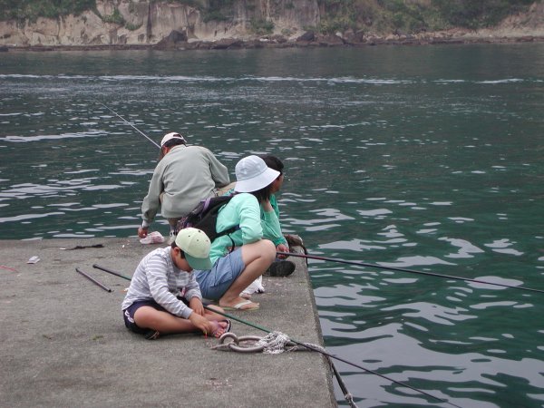 - 岩地では親子体験ツアーの38名が釣りなどで楽しんでいました。