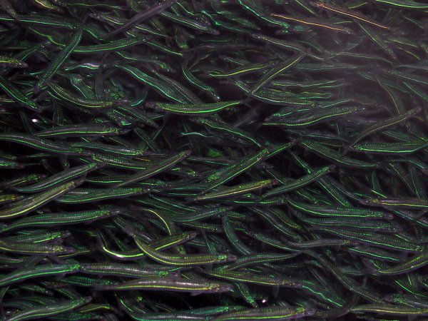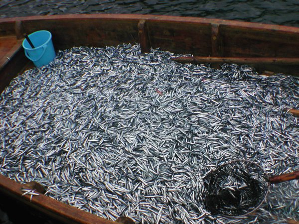 - キビナゴの水揚げ。 船上の様子です。 網の中からキビナゴを救いますが、大漁ですくってもすくってもキビナゴはいなくなりません。