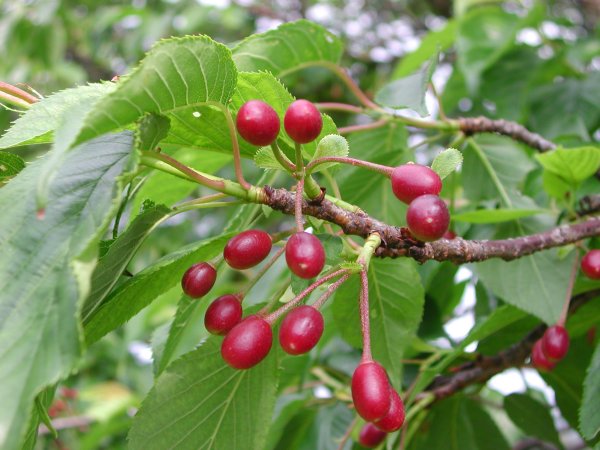 - 春には、桜ライトアップでにぎわった那賀バイパス桜並木にでは、赤いサクランボが実りました。 大きな実ではありませんが、完熟すると紫になります。