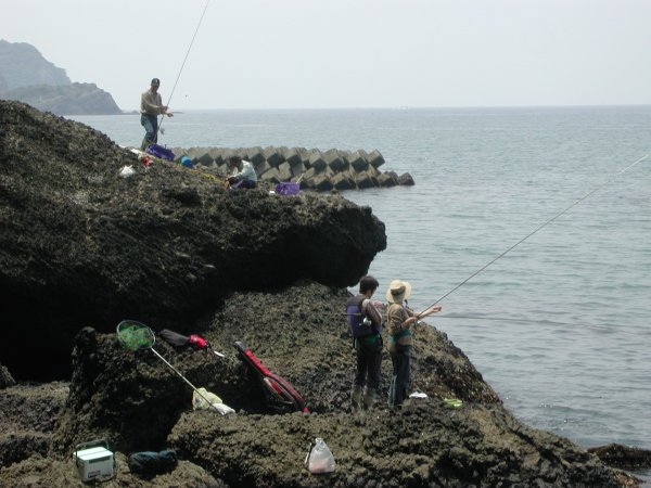 - 今日は天気もよく、波も比較的穏やかだったので、釣り人が多く見られました。