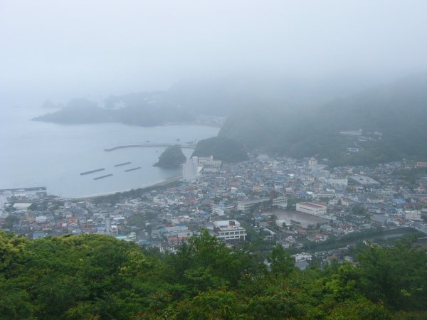 - 牛原山から見た今日の松崎です。昨日から降り始めた雨は、今日も1日中降りつづけました。