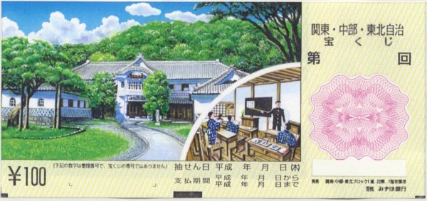 - 第1915回自治宝くじ文化遺産シリーズの図柄に重文岩科学校が決定しました。今年8月4日から、北海道から三重県のエリアで発売予定です。