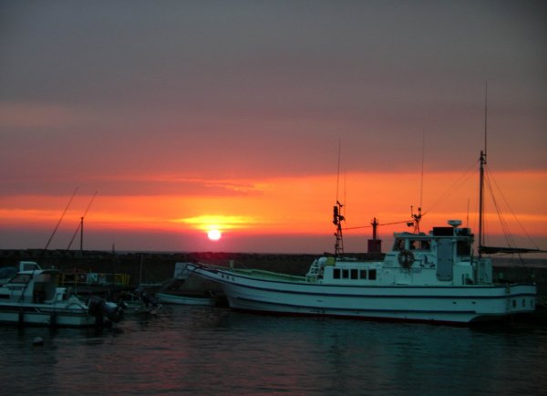 - 昨日の写真ですが、松崎港からの夕日です。 台風2号が去って空は澄み、松崎港から すばらしい夕日を見ることができました。