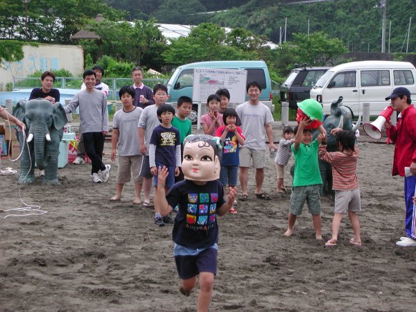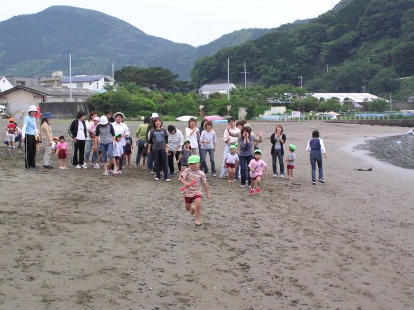 - 松崎海岸では三世代交流の西区区民大会が開催され、ゲーム、貝(ハマグリ、アサリ)採り、バーベキューで楽しみました。