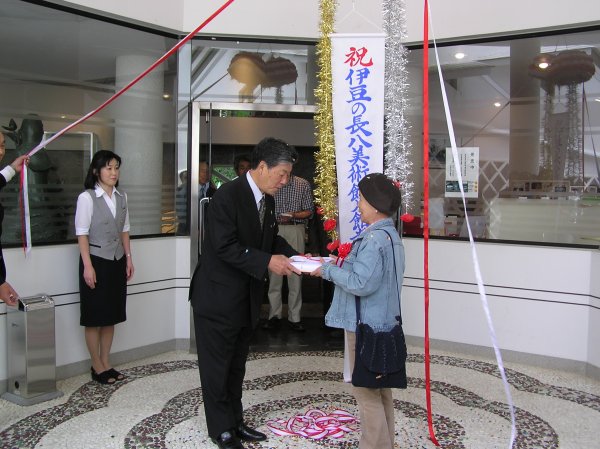 - 松崎町出身の漆喰コテ絵の名工「入江長八」の作品を展示している長八美術館では、本日、来館者350万人達成しました。 350万人目の記念すべきお客様は「湘南歴史散歩クラブ」の宮川さん(横浜市)です。