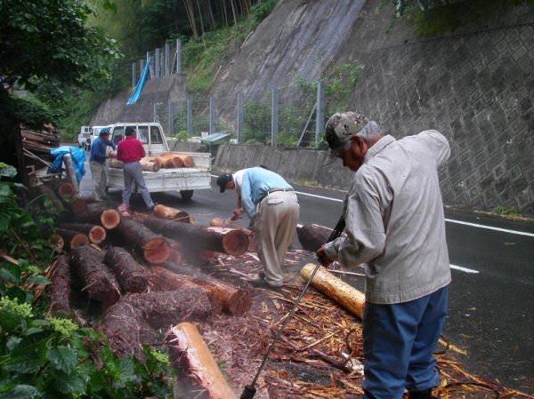 - 松崎町地域おこしの会で間伐材の搬出と皮むきを行いました。 秋には丸太のベンチを作成して、公共施設等に設置する予定です。