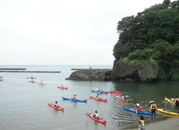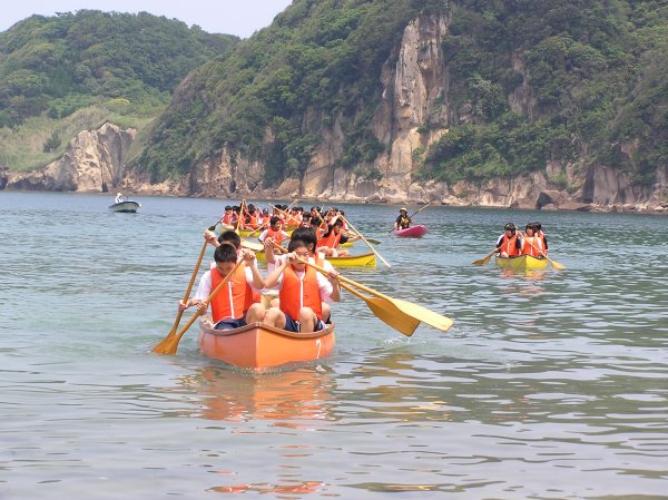 - 岩地区に昨日から来ている修学旅行生は、朝から地引き網を体験し、午後から釣りや櫓こぎ舟体験、カヌー、シュノーケリングをして楽しみました。