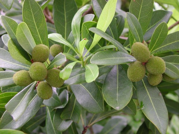 - ヤマモモが実り始めました。 もうしばらくすると、赤く色づき食べ頃になるでしょう。