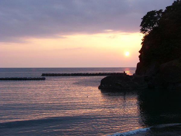 - 今日は1日どんよりした曇り空でしたが、松崎港からは素晴らしい夕日が見えていました。