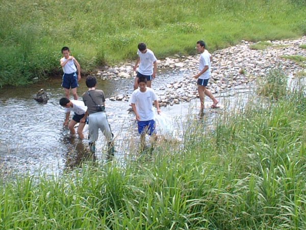 - 岩科川では、松崎中学校の生徒達が清掃作業をしていました。
