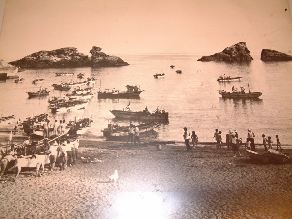 - さんさん松崎(旧松崎老人会)の作品展を文化ホールで行っています。 作品の中には、松崎尋常学校・岩科消防・雲見天草採り等、昔の懐かしい写真がありました。 この写真は、雲見天草採りの様子です。