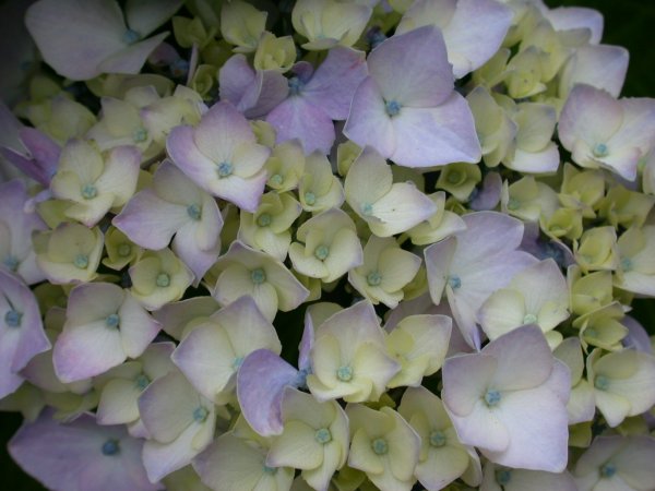 - あじさいが盛りを迎えています。 花を間近で見てみると、小さな花がたくさん集まっているのがわかります。