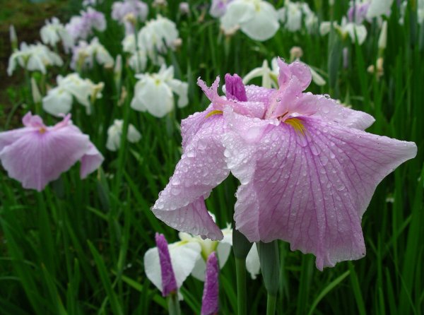 - 今日は午後から雨模様となりました。 「菖蒲」が雨滴をつけ綺麗に咲いていました。
