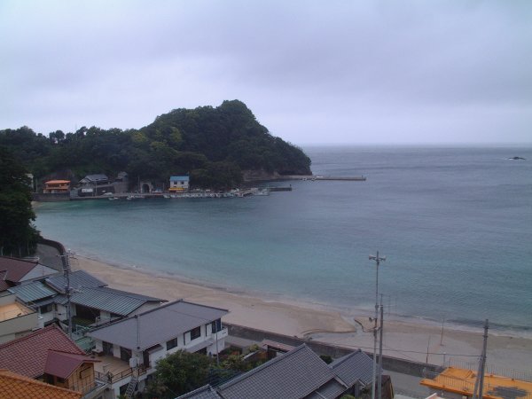- 今日の松崎海岸。 あいにくの雨模様です。