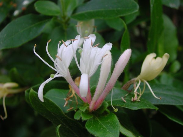 - 棚田や役場横では、スイカズラが咲いています。スイカズラは花の色が咲き始めは白色か淡い紅色ですが、咲いているうちにだんだん黄色に変化していきます。
