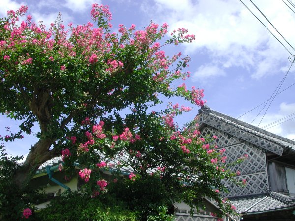 - 松崎らしい風景です。 サルスベリの花と、なまこ壁が調和していい雰囲気です。