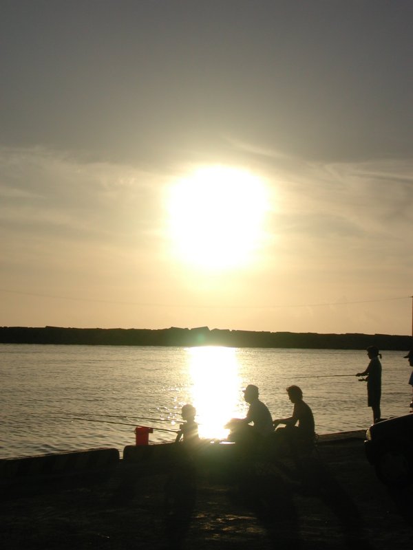 - 今日夕暮れの松崎堤防です。 釣り客が夕日のシルエットで綺麗でした。