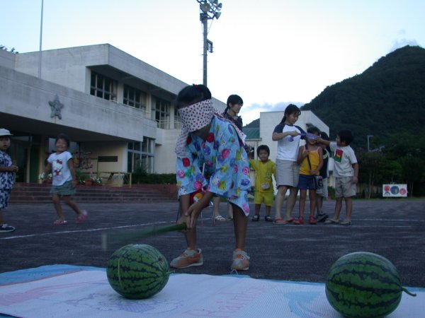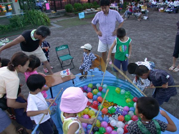- お楽しみ会は、ヨーヨー釣りや輪投げ、スイカ割りなど多くの企画で盛り上がりました。
