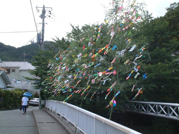 - 役場近くの宮内新島橋には、七夕飾りが飾られています。