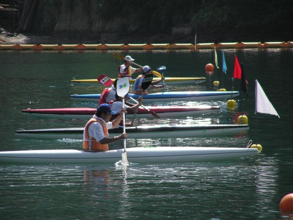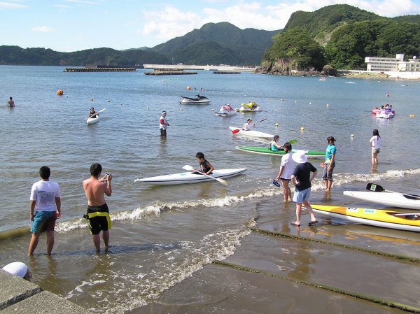 - 賀茂村の安良里港では、カヌー大会が開催され、松崎町からも海洋クラブが参加しました。