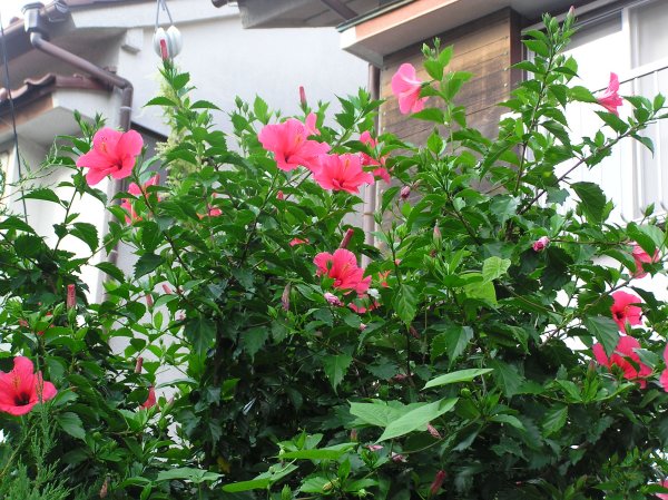- 町内の民家の庭では、ハイビスカスが見頃を迎えています。