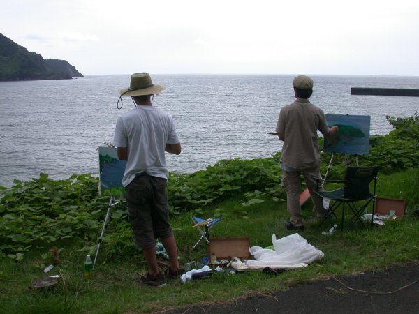 - 松崎海岸では、松崎高校美術部がスケッチをしていました。