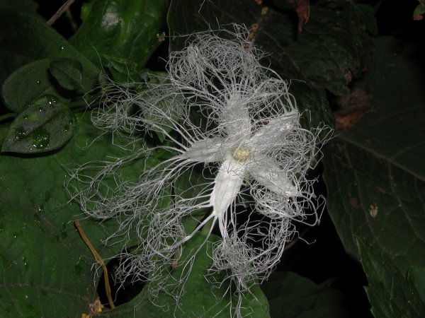 - 棚田周りで撮ったカラスウリの花です。 花は、雌花で、日没から明け方にかけて咲きます。 朝、蕾を見つけていたので夕方撮りに行ってきました。 花が開くまで1時間ほどかかりました。